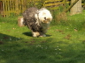 Bandit im “Kampf” mit Mama Ophelia um seinen Lieblingsknochen - Ostern 2009