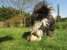 Er gibt seine kurze Rückenlinie und sehr dunkle Veranlagung (wenig Weißanteile) auch wirklich hervorragend weiter. Der ideale Deckrüde für zu hoch weißfaktorierte Linien mit audiometrischen Problemen.