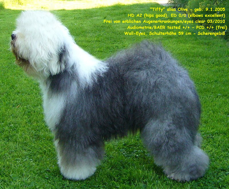 Hündin nach Dänemark abgegeben hätte namens “Olive” - er hätte aus dem Präsidium des dänischen Bobtailclubs gehört, daß die Hündin in Dänemark zum Verkauf angeboten worden wäre. Innerhalb einer guten Woche war Tiffy