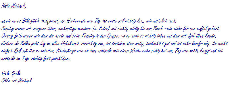 Fazit: Zag braucht Menschen, die ihn voll in’s Familienleben integrieren, sich artgerecht viel mit ihm beschäftigen und ihn bedingungslos lieben. Und die hat er nun mit mir zusammen in Schwerin gefunden!