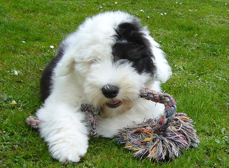 Zag ist ein Hund, der über jede Art mentaler Auslastung sehr glücklich ist, wie es sich für einen arbeitswilligen Bobtail gehört - ich habe deshalb öfters mit ihm geklickert. Er ist hochintelligent, kapiert super schnell und für Leckerchen tut er fast alles