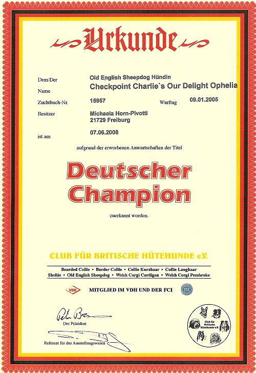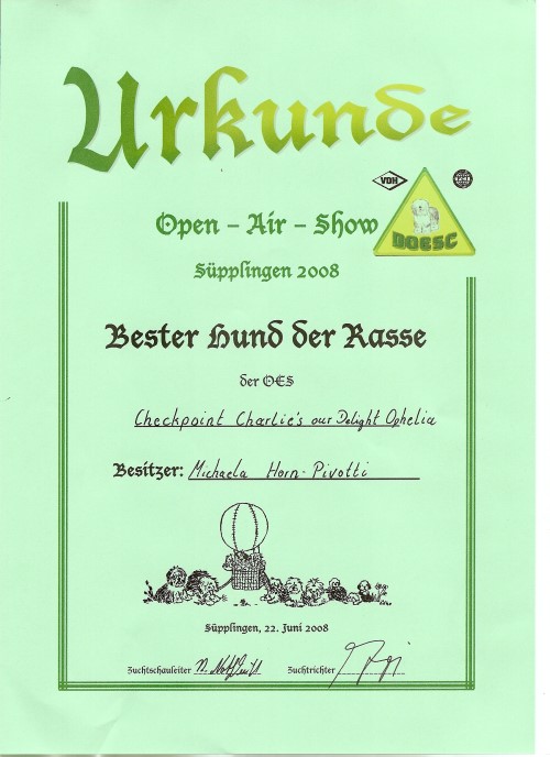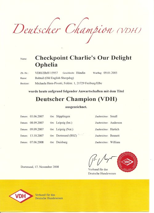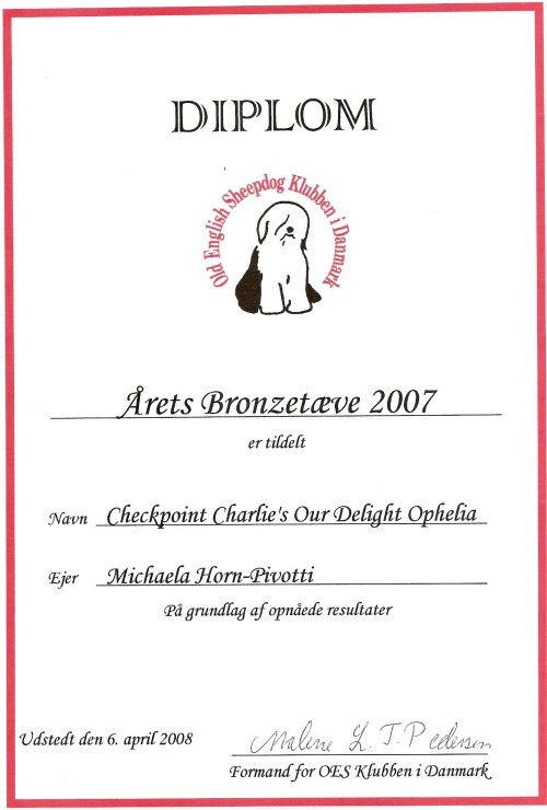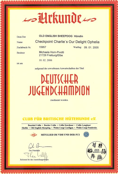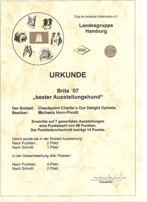 Ophelia’s Urkunden und Auszeichnungen: