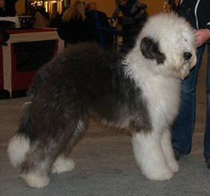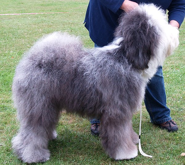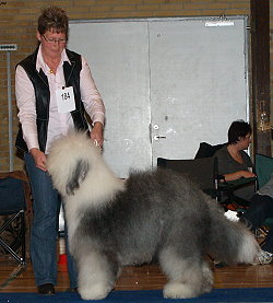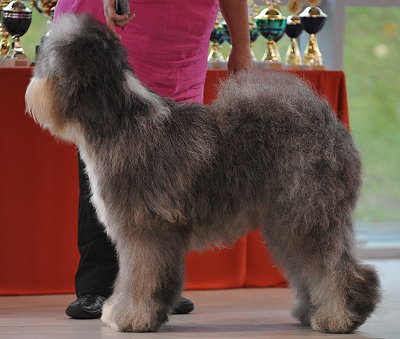 reiche Behaarung, gutes Pigment, sehr typischer Kopf, etwas wenig Vorbrust, korrekte Winkelungen, schwungvolle Bewegungen, korrektes Gebiß”