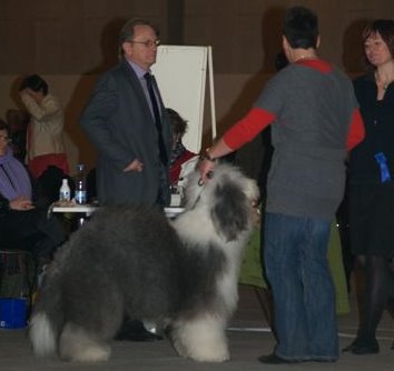 Richterbericht: “Kompakter Rüde von korrekter Größe, kunstvoll vorgeführt, eleganter Kopf, hervorragendes Gebiß, ausreichend
