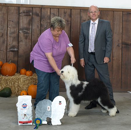 Richterbericht: “Old English with masculine expression, size and type. Strong bones, good proportions in head, well placed, dark eyes.