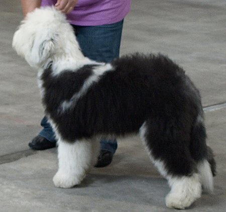Richterbericht: “A sweet lovely girl with nice eye, good scissor bite, she needs to tighten up at the shoulders, but that will come. Good angulation,