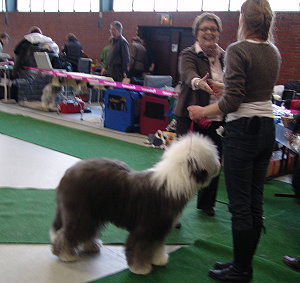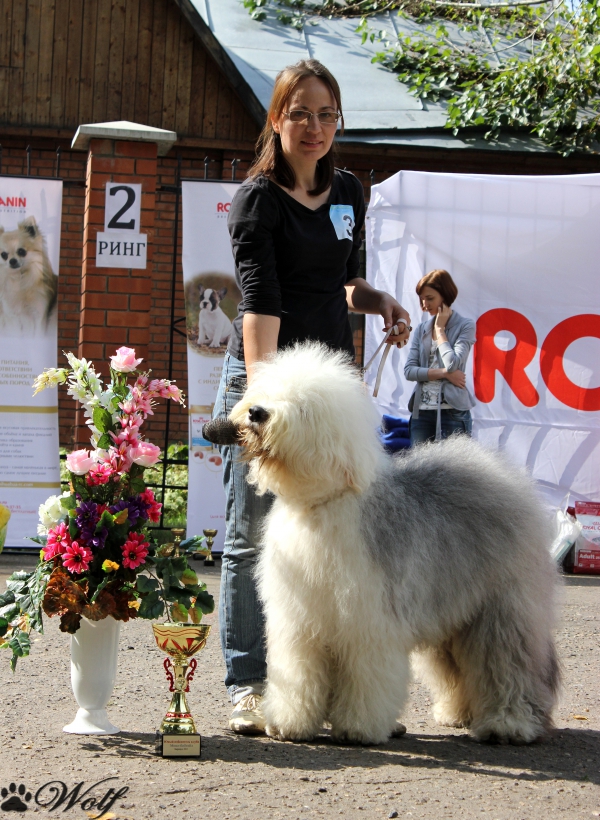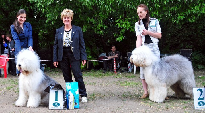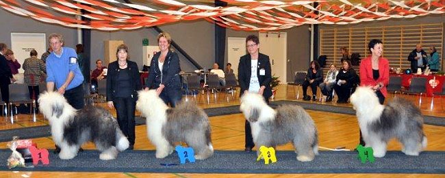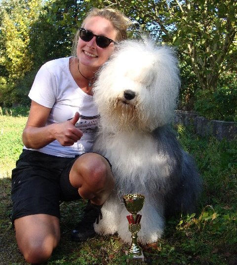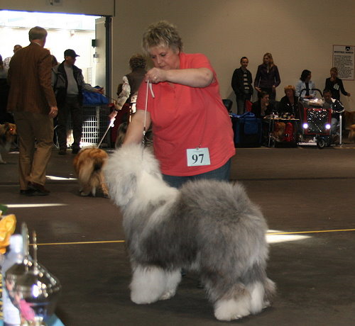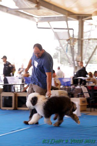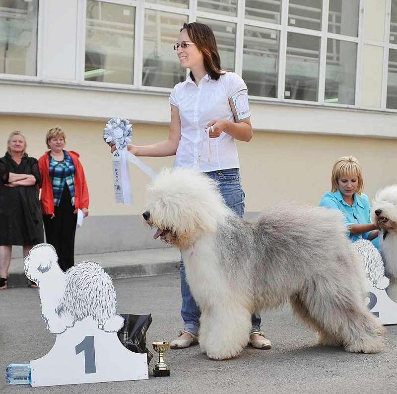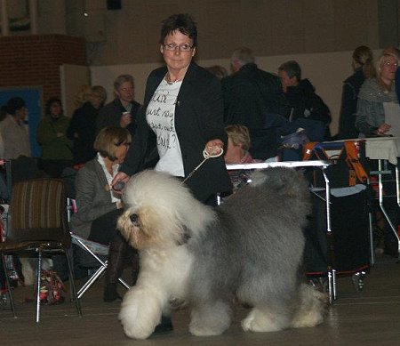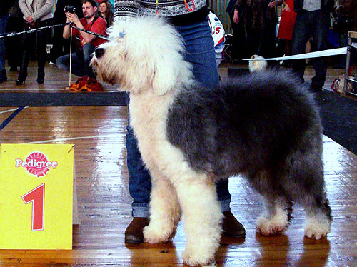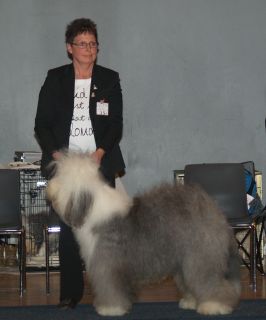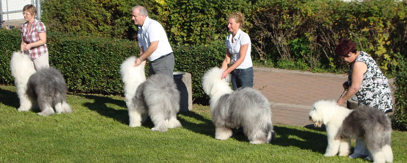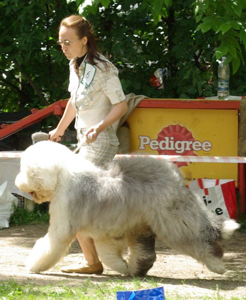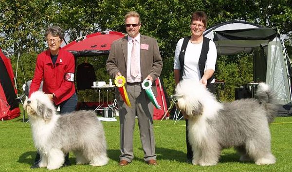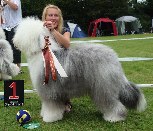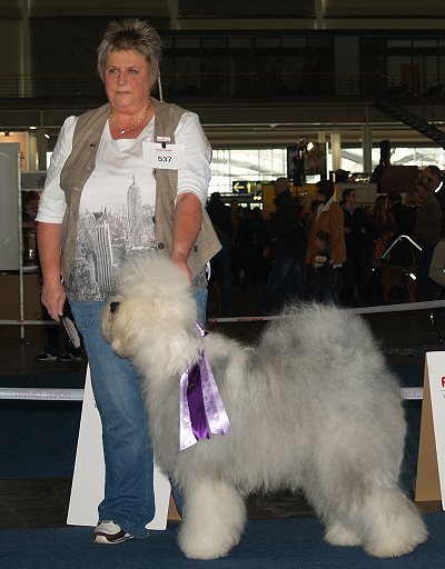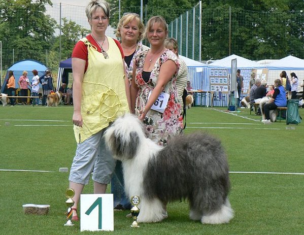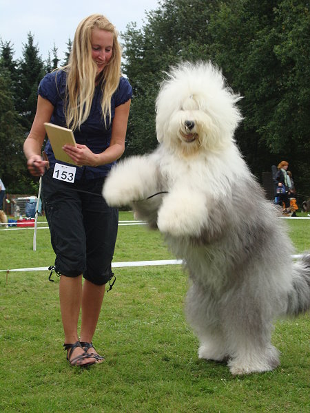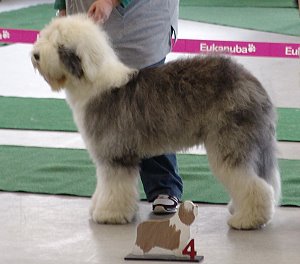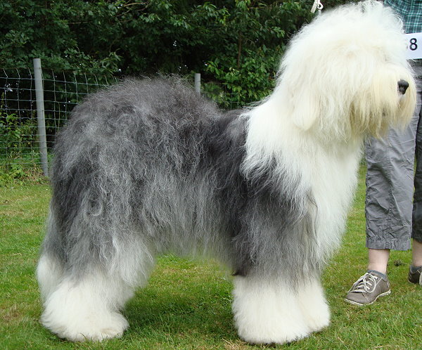 Richterbericht: “Excellent young bobtail, blooming coat, good head, massive bone, good front, correct topline,
