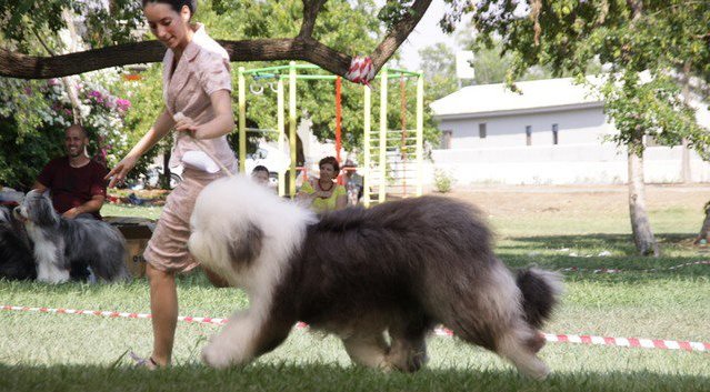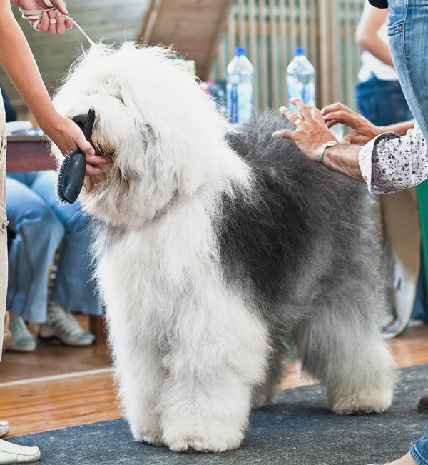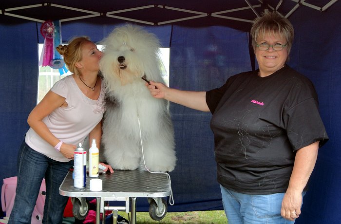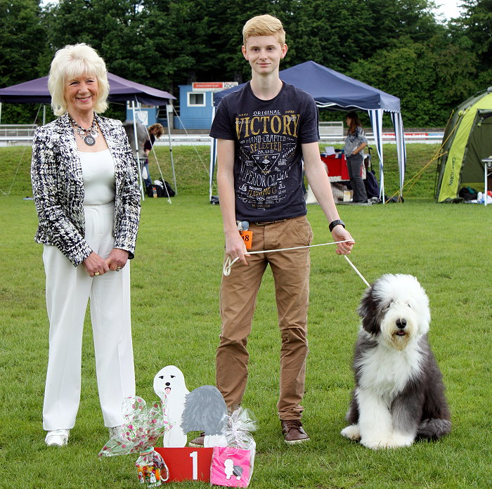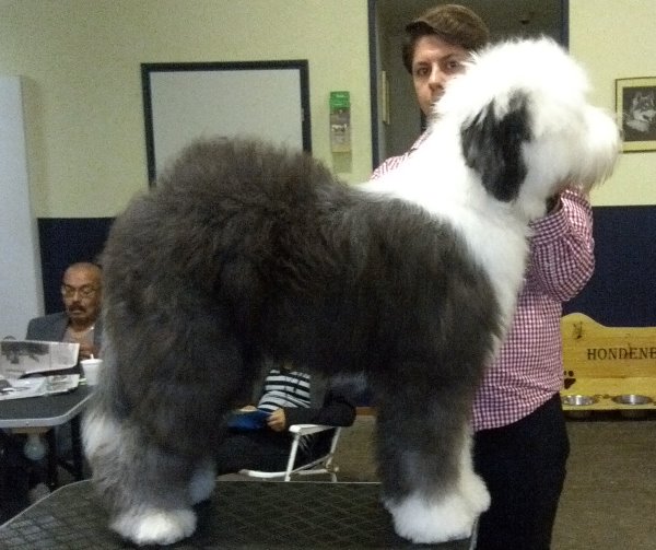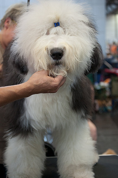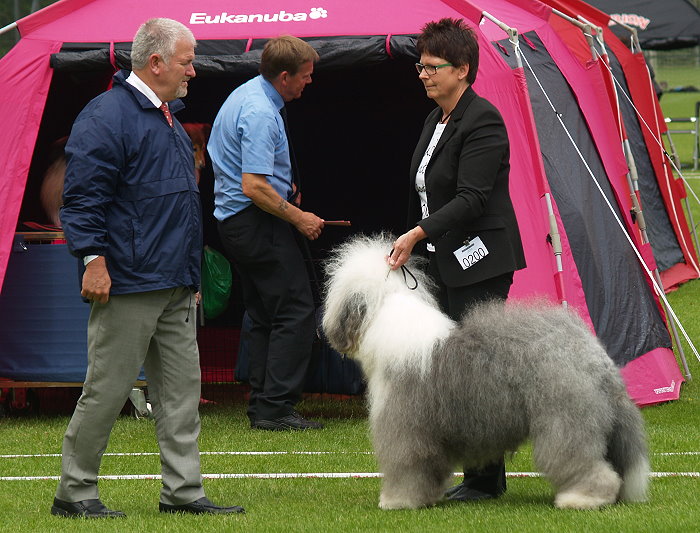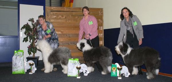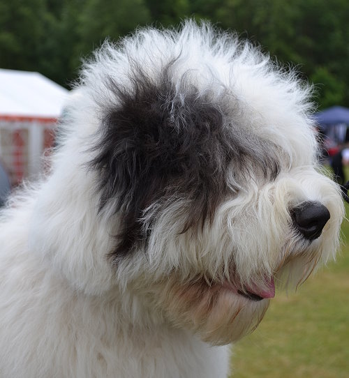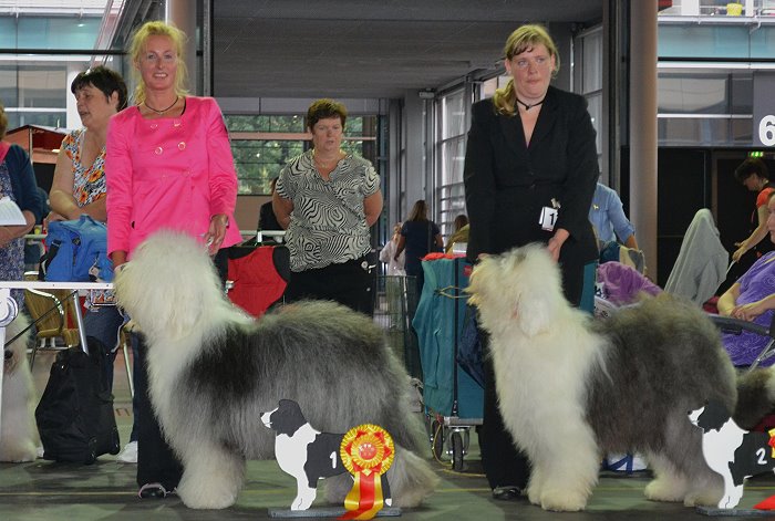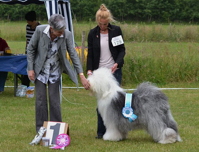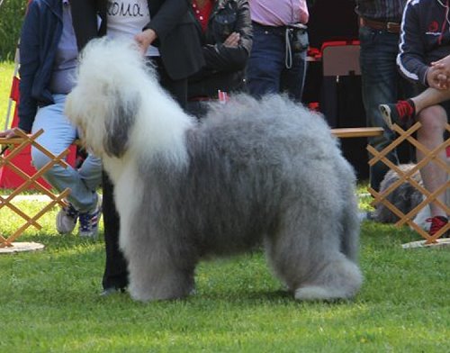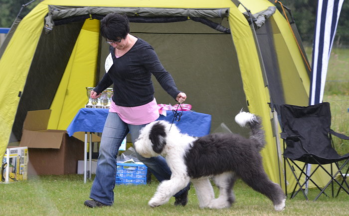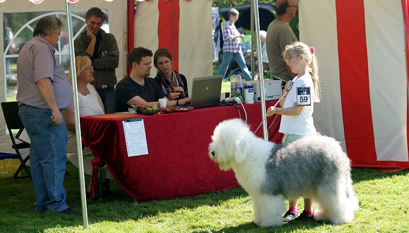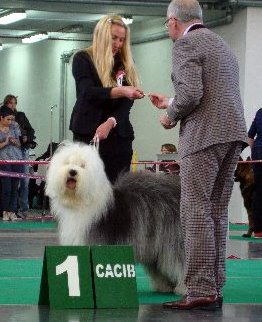 Richterbericht: “23 Monate alte Bobtailhündin von gepflegter Gesamterscheinung, gut proportionierter Kopf, hellbraune Augen,