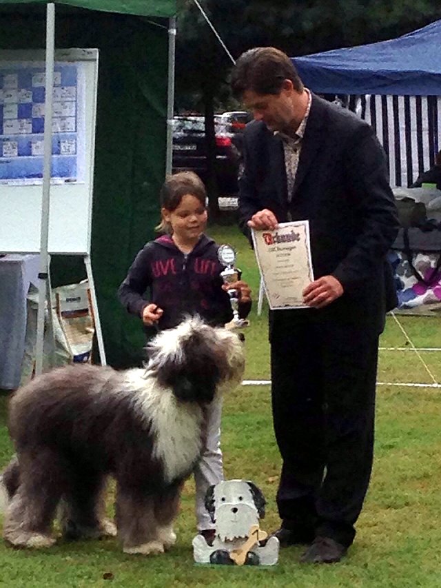 Fluend movement both from the side, front and back. Full coat, good temperament: Best junior!”