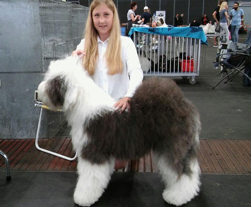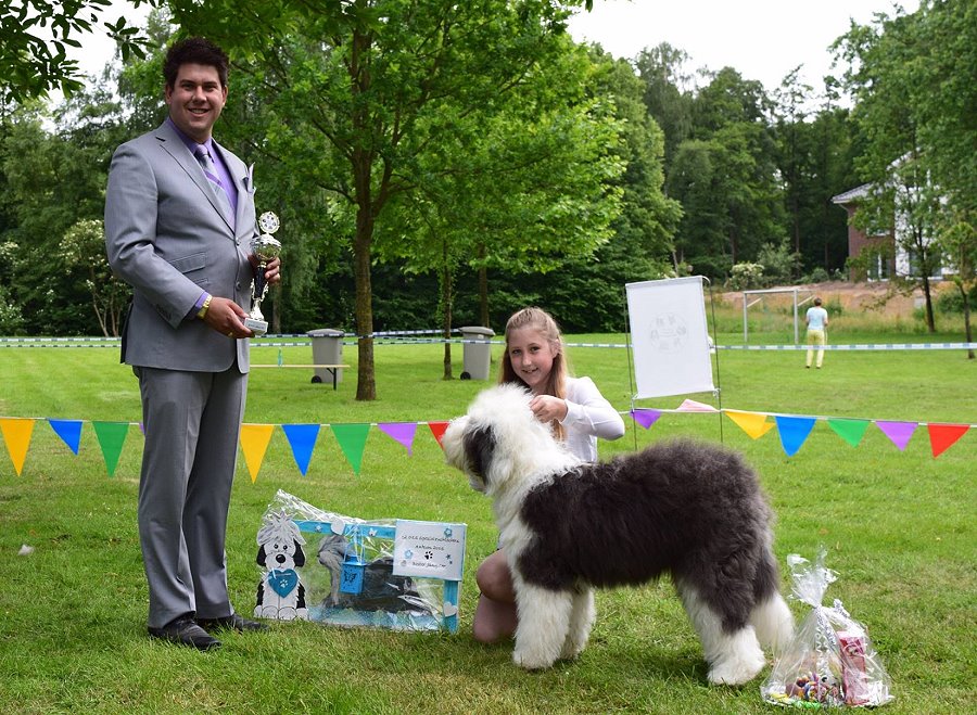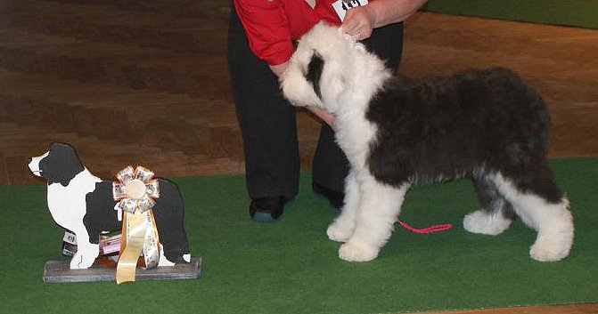 Richterbericht: “6 1/2 Monate alte Hündin, schon sehr schöner Typ, kompakt, sehr liebes Wesen, richtiges Mädchen.