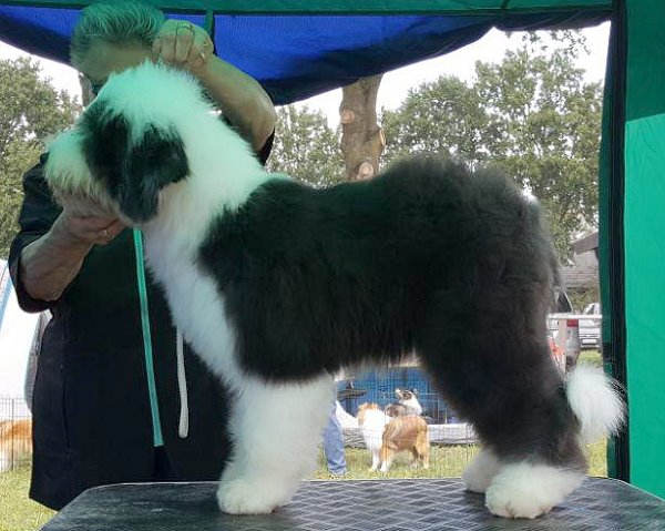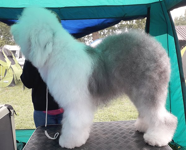Die Hinterhand ist vorzüglich gewinkelt, vorzüglicher Schub, raumgreifend in der Front, sehr schönes Haarkleid und sehr schöne Präsentation.”