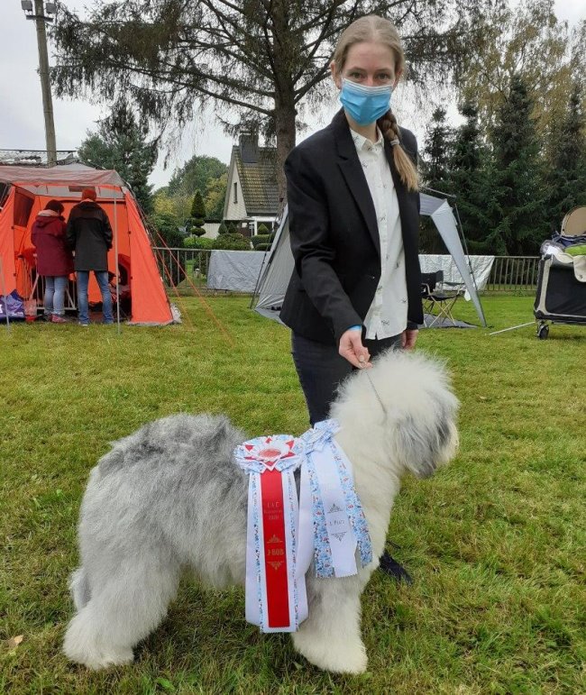 Richterbericht: “4 month old, lovely girl, very nice head, nice face-expression, very promising body proportion, very promising angulations,