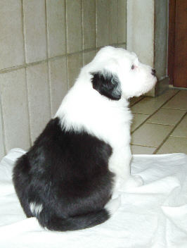 Nanuk ist ein substanzvoller, bodenständiger Rüde mit einem typischen Bobtailwesen, so wie mir ein Rüde gefällt. Er ist einerseits zartfühlender Gentleman
