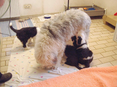 kümmert sich rührend und liebevoll um ihre wunderhübschen Babys, die leider etwas zu früh geboren wurden und dadurch haben es 1/1 Welpen von 2/6 leider nicht geschafft, zu überleben.
