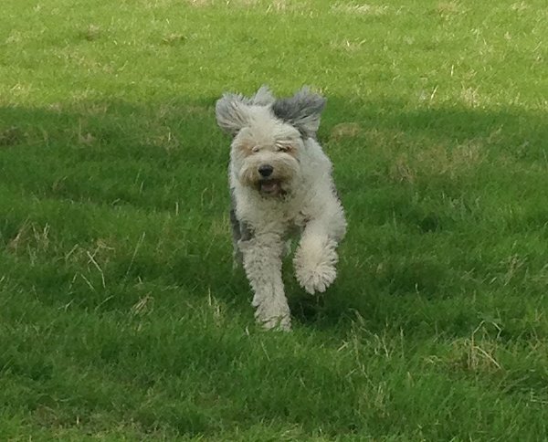 Junghund. Wir merken jetzt allerdings schon, dass sie was älter wird und müssen sie oft bremsen, da sie sonst wieder Rückenschmerzen bekommt.