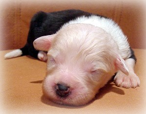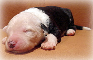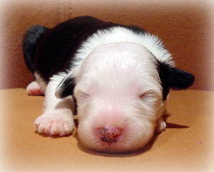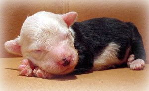 Welpe Nr. 2 - Hündin geb. am 9.1.2005 um 0.10 Uhr Gewicht: 312 gr.