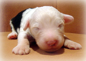 Welpe Nr. 3 - Rüde geb. am 9.1.2005 um 0.15 Uhr Gewicht: 314 gr.