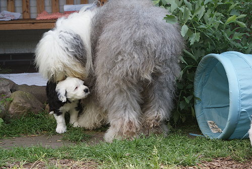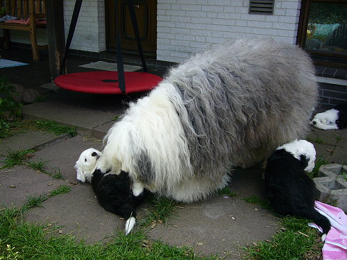 16.50 Uhr - Das erste Fruchtwasser ist gekommen... 18.10 Uhr - erste Austreibungswehe Nr. 1: 18.50 Uhr - Hündin 506 gr. - Weißkopf