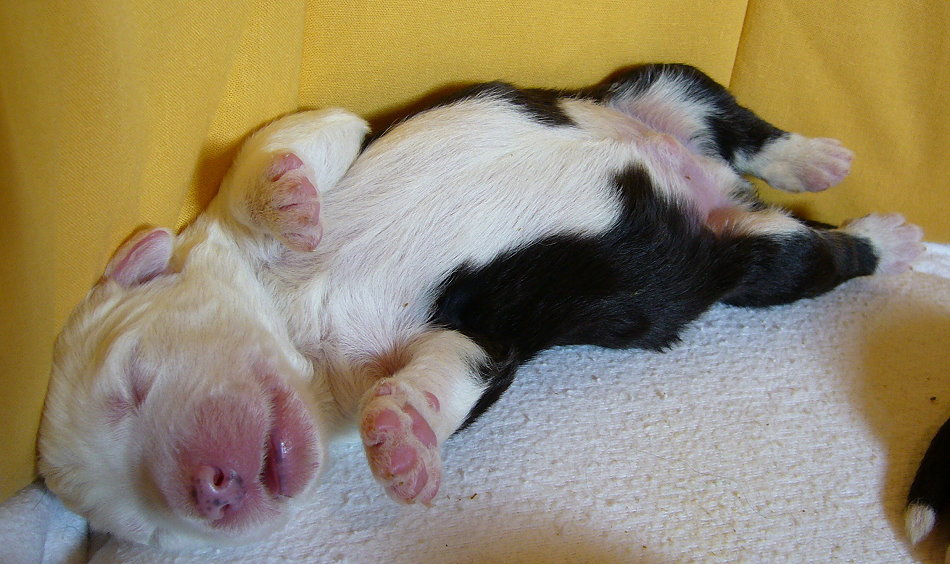 Alle Welpen haben einen vorzüglichen Biotonus, sehr hohen Dunkelanteil und keinen Flash.