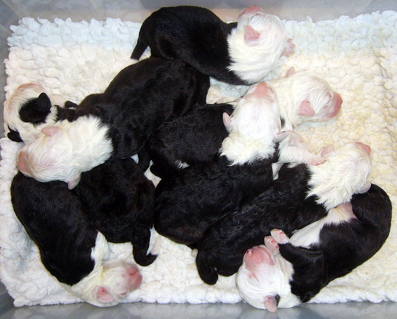 Wenn eine Hündin schon 2 Würfe hatte, dann kann ich als Züchter bereits relativ gut erkennen, wie und was diese Hündin vererbt. Da ich von Tiffy’s Schwester Ophelia von diesen zwei gleichen Rüden auch große Würfe hatte, weiß ich sogar ziemlich sicher, was meine Mädels genetisch sichtbar tragen. Beide Würfe mit den Schwestern waren Outcross-Verpaarungen, also keine Verwandschaft zum Partner oder anders ausgedrückt: Keine Linien- bzw. Inzucht. Beide vorangegangenen Rüden habe ich bewußt gewählt, um in erster Linie jedes audiometrische Risiko bei den Nachkommen auszuschließen. Und da alle 43 Kinder von beiden Schwestern audiometrisch okay und die Augenuntersuchungen frei von erblichen Erkrankungen sind, habe ich jetzt für Tiffy primär nach einem Rüden gesucht, der ihre Nachzucht optimal in allen phänotypischen Defiziten ausgleicht zu meinem gewünschten Bobtailtyp - natürlich mit dem notwendigen Quentchen Glück und dem berühmt besagtem Händchen.