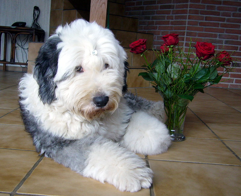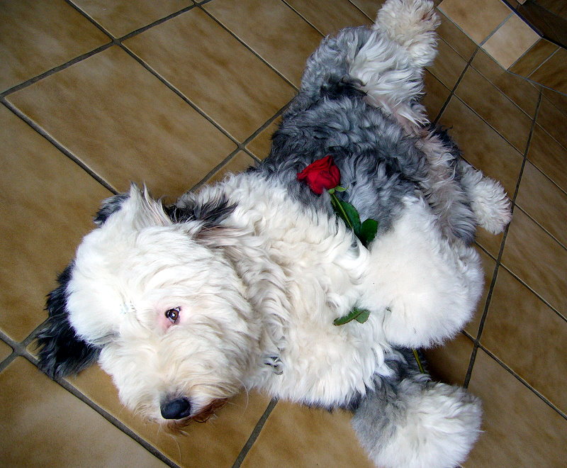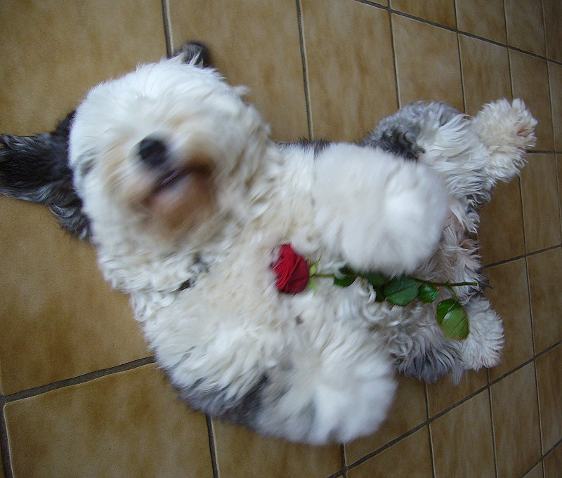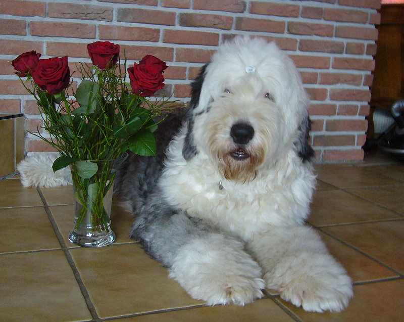 Ich war genauso erstaunt wie meine Chefin Michi - wo kommen die denn her??? 5 wunderschöne rote Rosen - hat doch keiner Geburtstag heute?? I was as much as surprised as my owner Michi, 5 beautiful red roses.... It is nobody's birthday today or...?