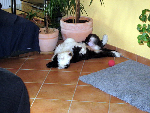 Anliegend ein Foto von Baloo - völlig erschöpft nach Weihnachtseinkäufen. Bis dann.