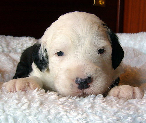 Mittlerweile sind die Augen offen und die Welpen fangen an, langsam auf optische und auch akustische Reize zu reagieren.