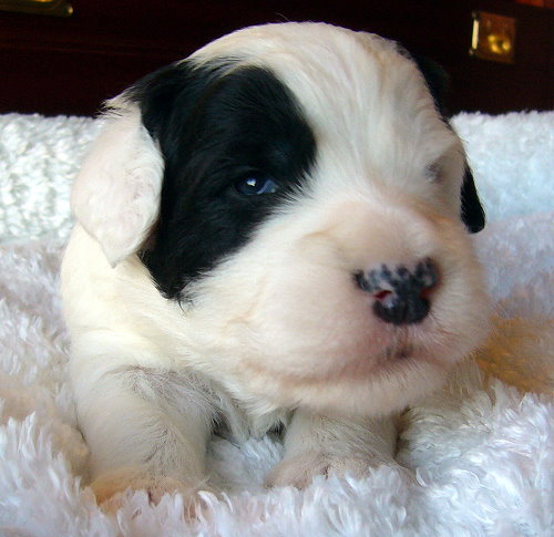 Auf den ersten Blick haben alle Welpen sehr dunkle Augen und beim Betrachten der Bilder und Gewichte bitte nicht vergessen: Sie sind bereits am 59. Tag geboren worden, also etwas zu früh...