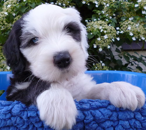 Er hat rechts das einzige blaue Auge in dem Wurf...