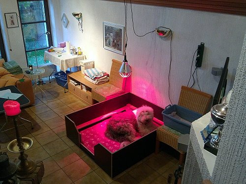 daß man - egal wo man sich gerade befindet - so ziemlich alle Aktivitäten im Haus mitbekommt. Hier verweilt die Bande dann auch bis zu ihrem Umzug in den Hunderaum. Hier spielt das Leben,