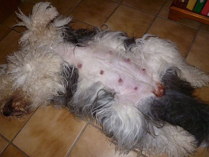 Mein Tierarzt hatte 5 Welpen und 2 leere Blasen auf dem Ultraschall gesehen, da hatte er wohl recht! Wir begeben uns jetzt erstmal etwas zur Ruhe...