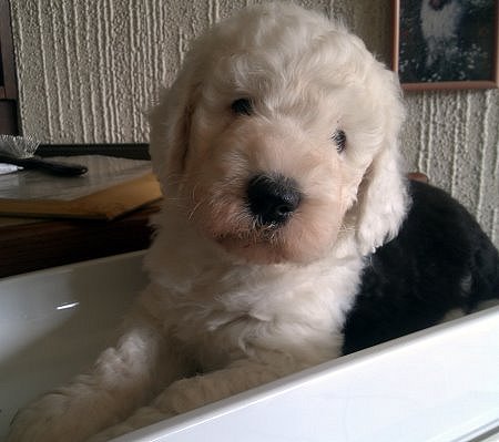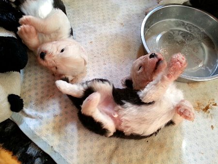 Hier zeigt uns Prada nun ihren schönen rosigen Welpenbauch und jeder darf raten,
