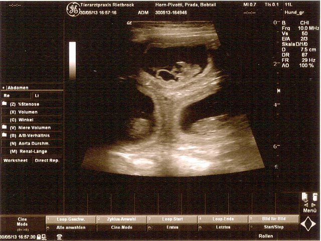 wieviele Welpen es werden könnten! Die Aufnahme stammt vom 54. Trächtigkeitstag...