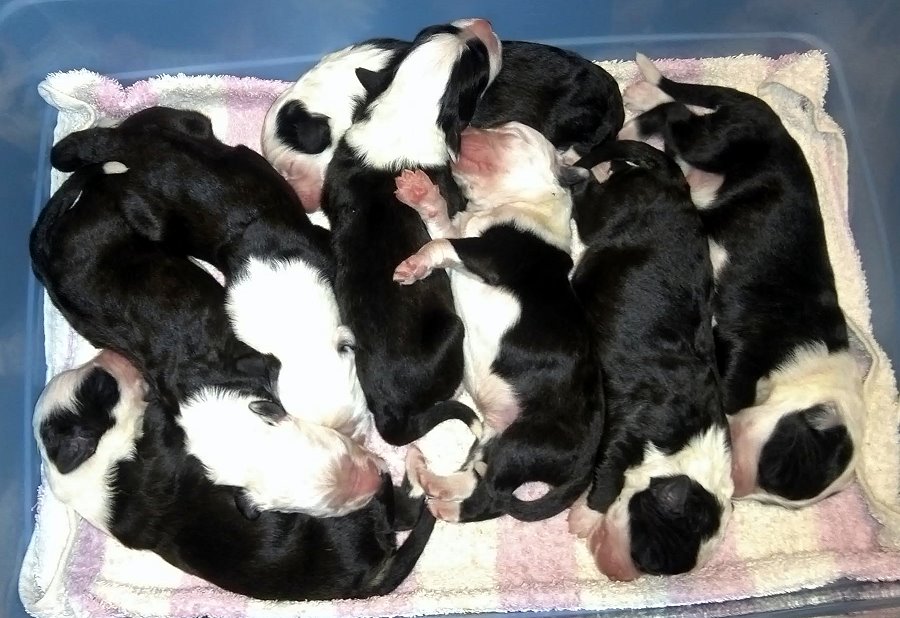1 Rüde & 5 Hündinnen = 6 Welpen 7 Rüden & 2 Hündinnen = 9 Welpen 1 Rüde & 8 Hündinnen = 9 Welpen