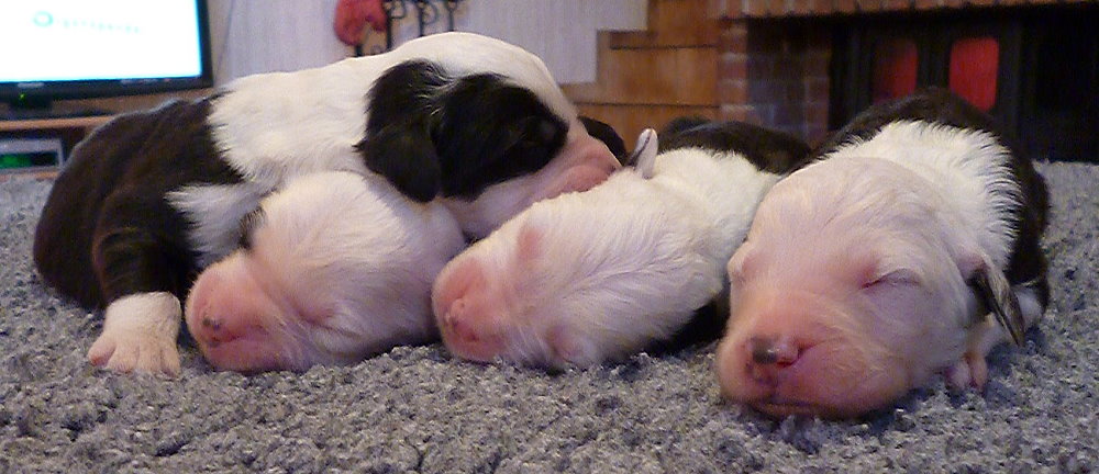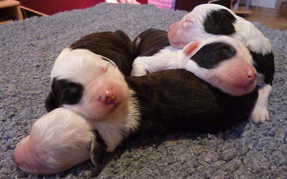 Gute 2 Wochen alt und alle Welpen können bereits sehr gut hören!
