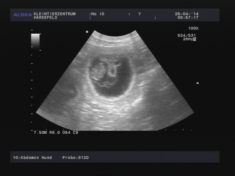 wieviele Welpen es werden könnten! Die Aufnahme stammt vom 53. Trächtigkeitstag...