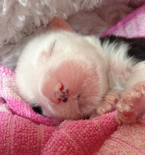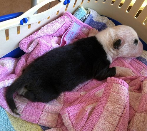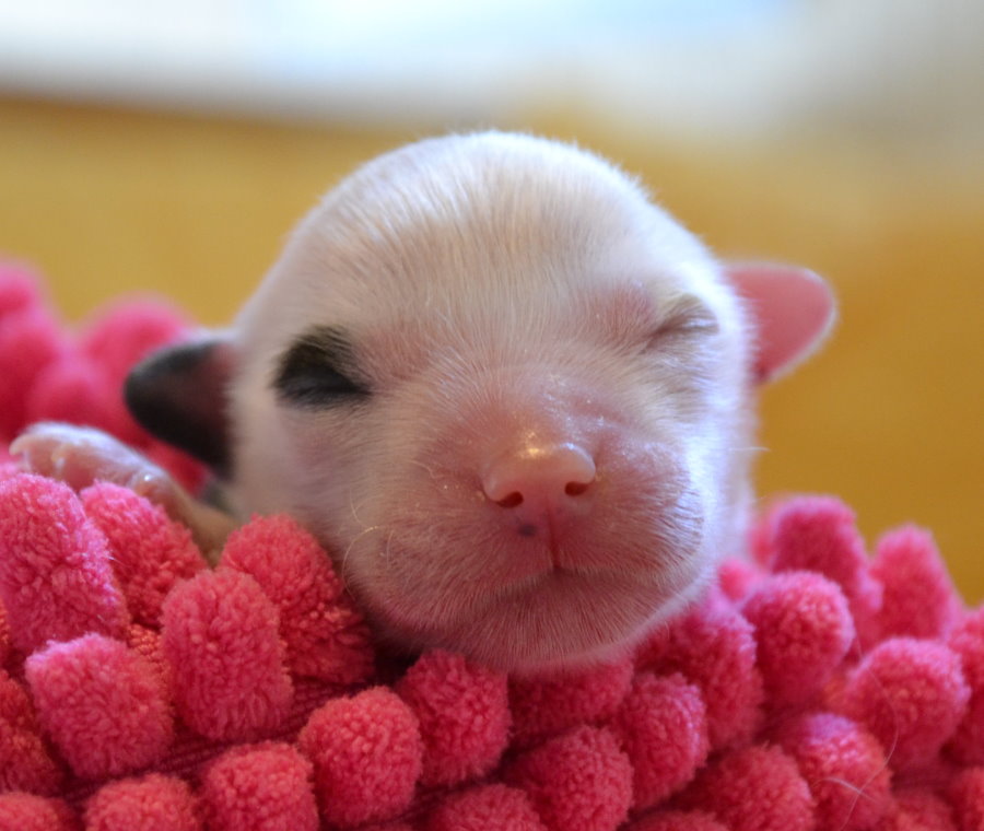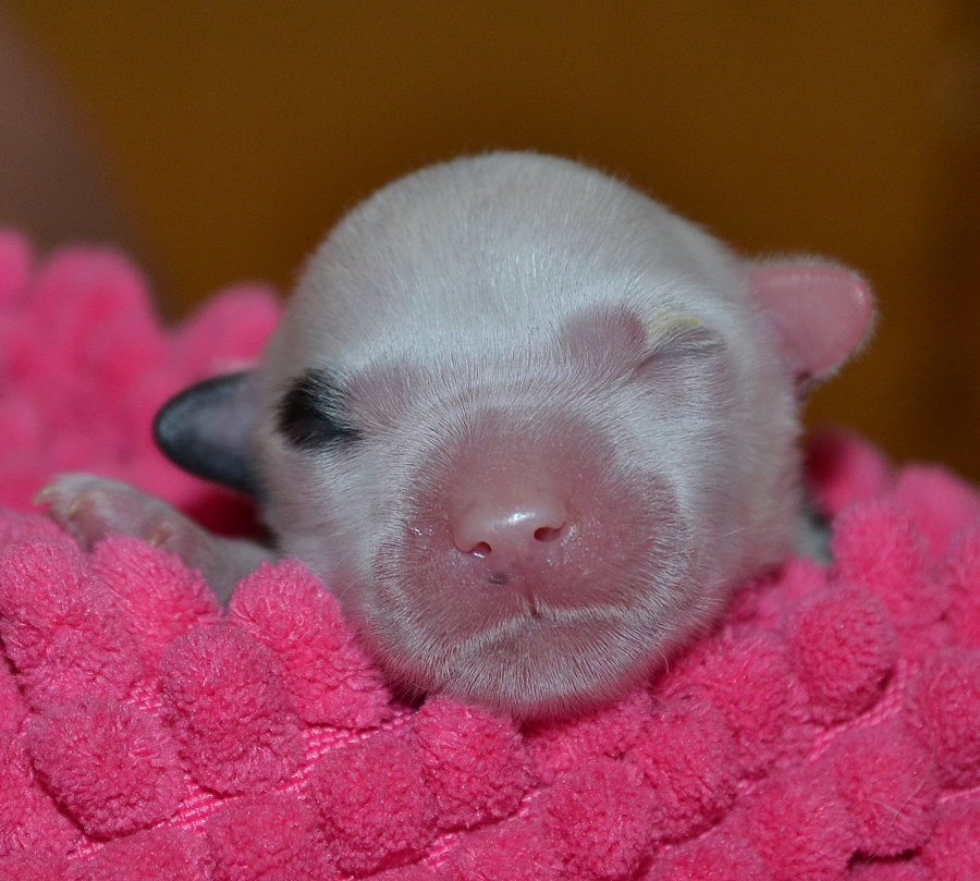 Hier zeigt uns Rosalie nun ihren schönen rosigen Welpenbauch und jeder darf raten,