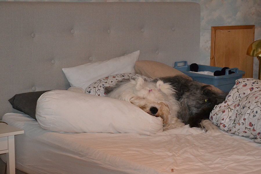 Und Rosalie erfreut sich sichtlich entspannt über ihre nächtliche Wurfkiste.