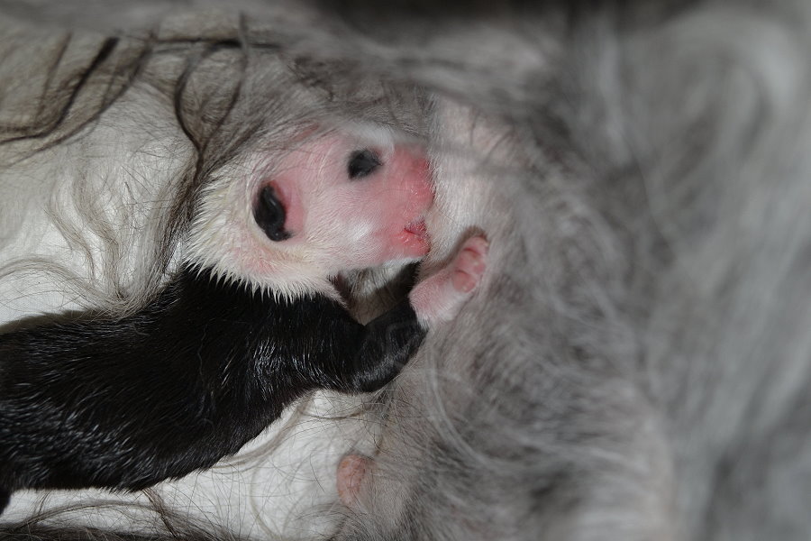 Er wiegt jetzt 170 gr. - heute hat er zum allererstenmal richtig an der Zitze gehangen - große Freude!!!