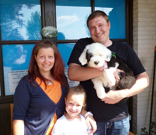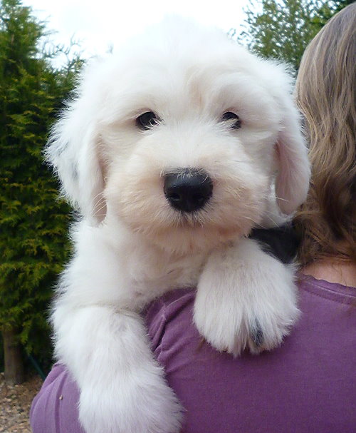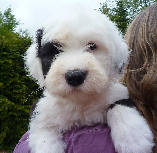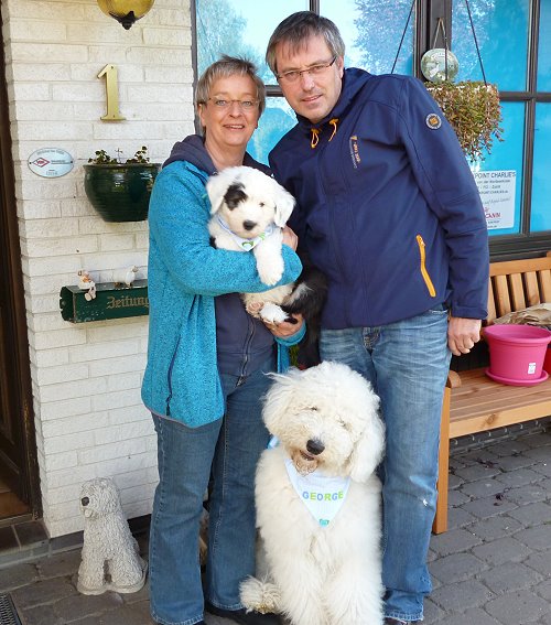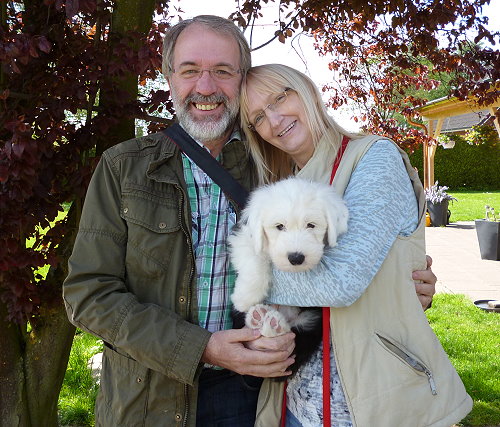 Leichter Rückbiß, kleiner Nabelbruch und nur ein Hoden fühlbar bei der Wurfendabnahme. Jetzt mit 12 Wochen ist der 2. Hoden auch angekommen, der Nabel operiert und das Gebiß steht unter Beobachtung.