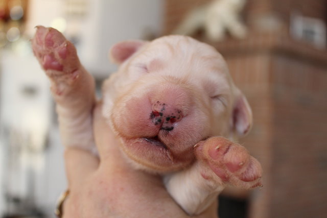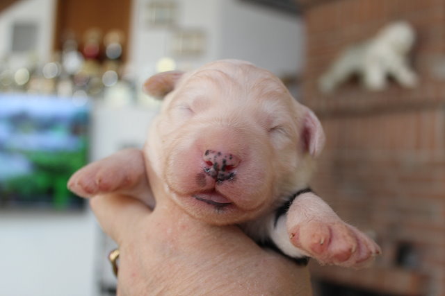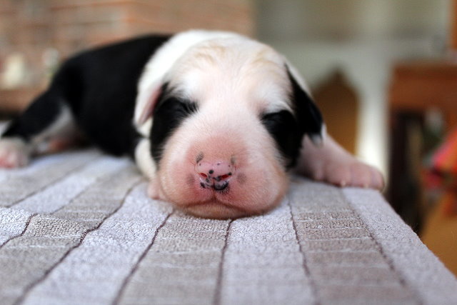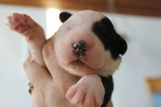 Alle Welpen bekommen braune Augen mit tollem Pigment. Es ist ein recht ruhiger, entspannter Wurf ohne die üblichen “Flucht”instinkte aus Kiste und Gatter.