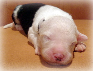 Welpe Nr. 2 - Hündin geb. am 9.1.2005 um 0.10 Uhr Gewicht: 312 gr.